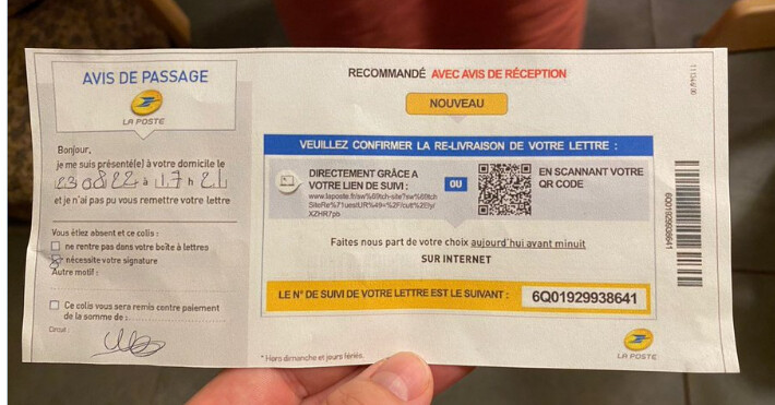 Si vous n’attendez rien de particulier comme courrier et/ou colis soyez très vigilant(e)s avec les avis que vous trouvez dans la boite aux lettres.